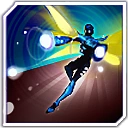 Blue Beetle rushes in target direction. While rushing he turns and fires up to 4 energy pulses at the closest enemy he is moving away from. Each pulse deals Attack Damage, which is reduced by 50% when hitting an enemy more than once.